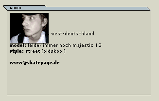 wenn jemand von euch gerade nichts besseres zu tun hat, fände ichs ganz nett, wenn dieser jemans sich eventuell mal http://skatepage.de anschauen und mir ne kritik zurückliefern könnte.