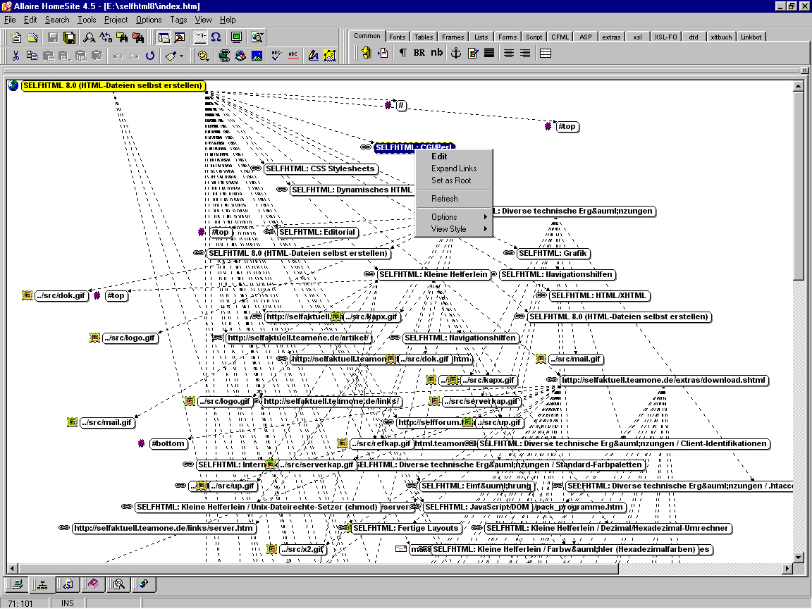 Viel besser wäre es, wenn man sich das Gebilde dynamisch erschließen könnte (also eine Seite aussuchen, die Verzweigungen präsentiert bekommen, einen verfolgen, wieder neue Verzweigungen präsentiert bekommen...)