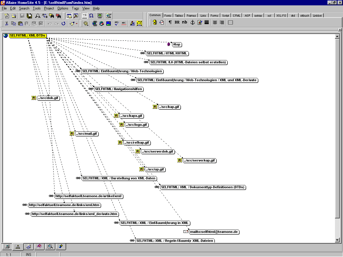 dort kann man die verlinkung immer weiter vertieft anzeigen lassen (alles auf einem fleck: bild 1) , oder man nimmt eine seite und macht es zum root, dann kann man von dieser seite ausgehend die verlinkung anzeigen lassen (bild 2).