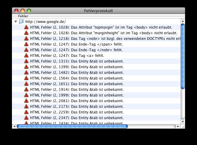 Setzt iCab dafür tatsächlich einen validierenden SGML-Parser ein? (Was rechtfertigt den Rechenaufwand bei jedem Dokument?) Oder ist es eher das interne Fehlerlog beim Parsen und Verarbeiten des Codes? Was für Fehlermeldungen gibt er denn aus, ich lese, dass er sogar Attributwerte überprüft, aber alt="" grundlos ankreidet?