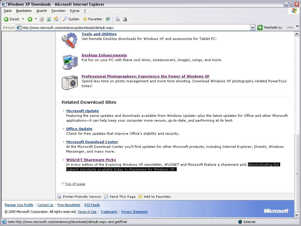Tja ... so viel über "highest standards shareware" für XP von MS ;-)