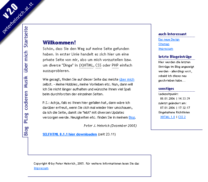 So. Ich habe nun das Aussehen meiner "alten" Seite (siehe Link oben) komplett verändert. Das neue Design könnt ihr unter diesem Link aufrufen.
