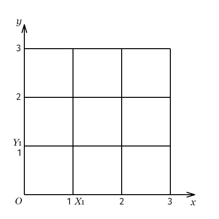 *O*(0,0) (*O* wie *obviously*{:@en}), *X*₁(1, 0), *Y*₁(0, 1)