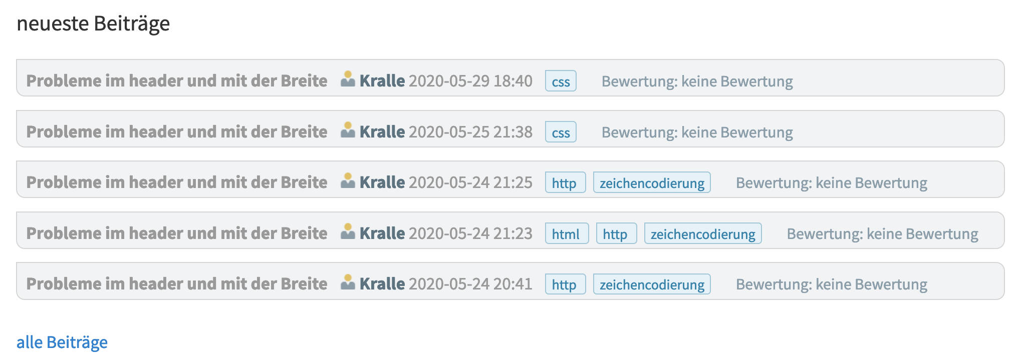 PS: Mit „Ueberschrift“ willst du das immer noch bestehende Problem mit der Zeichencodierung umgehen? Schlau. Nicht.
