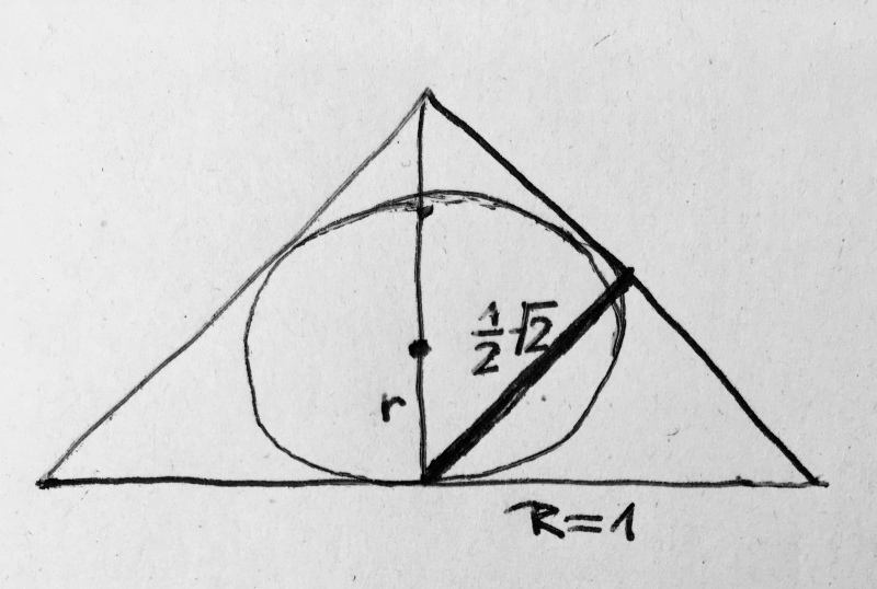 ½√2 + ½√2 + 0 = R + r, das heißt √2 = 1 + r; r = √2 − 1