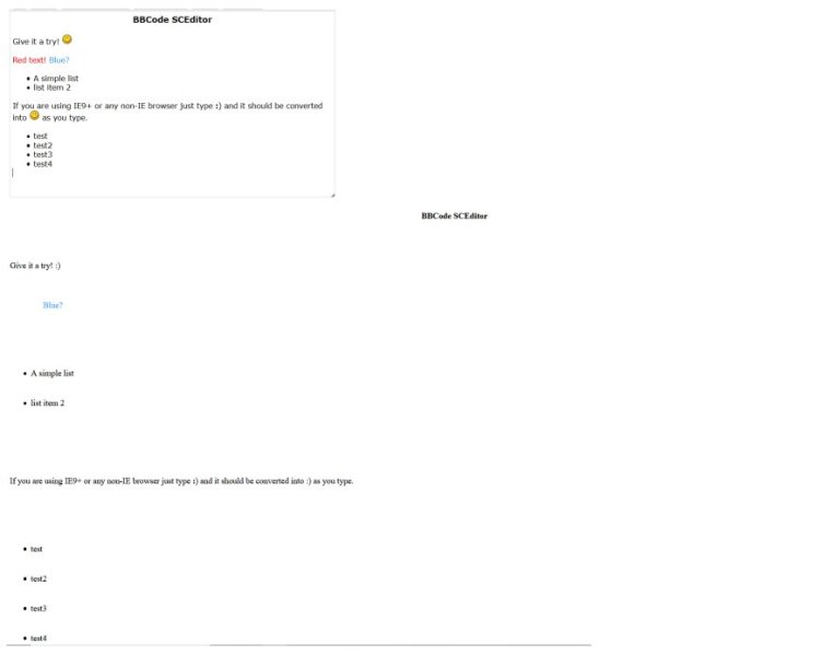 <div style="text-align: center"><span style="font-size: medium"><strong>BBCode SCEditor</strong></span></div><br />