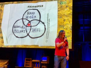 Charlie Owen hat einen großartigen Job gemacht, als sie erklärt hat, wie Beschränkungen unsere Arbeit als Entwickler und Designer beeinflussen und sie besser machen — wenn wir aufhören diese Beschränkungen zu ignorieren. Ich fand es ein wenig schade, dass Mike Monteiro dieses Jahr nicht auf der btconf spricht, aber sie schlug nicht nur in genau dieselbe Kerbe, sondern dass sie das aus weiblicher Sicht vortragen konnte, war nicht nur eine Bereicherung sondern sicher im Sinne von Mike, denn Gleichberechtigung und Teilhabe sind ein Aspekt, den wir als Menschen, die etwas erschaffen immer im Kopf haben sollten. Wir sollten nicht nur für einen kleinen Teil der Menschheit entwickeln (alte weiße Männer mit guten Augen und flinken Fingern)… We can do better! 😉