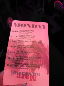 lautet der Titel von David Delgados Redebeitrag über seine Arbeit als Designer für die NASA. Darin zeigte Delgado die Herausforderung auf, die es bedeutet, uns Menschen Vorgänge wahrnehmen zu lassen, für die unsere Sinnesorgane nicht geeignet sind. So wird die Position der uns nicht sichtbaren Satelliten hörbar oder uns durchdringende kosmische Strahlung sichtbar. Die Umsetzungen sind sowohl technisch, als auch künstlerisch absolut spannend. Als absoluter Verkaufsschlager hat sich rein zufällig eine als Flurdekoration entwickelte Serie mit fiktiven Reiseplakaten mit Fernzielen in unserem Sonnensystem erwiesen. Als Public Domain-Werke wurden die Illustrationen auf allerhand Alltags-Gegenstände gedruckt und können als echte Produkte erworben werden. The stars are calling and we must go.