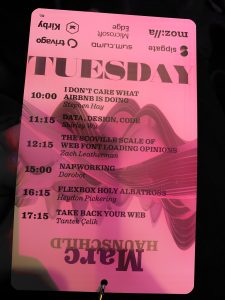 Für die side events gilt das sogar in einem noch größeren Maße. Es war schon etwas besonderes im Accessibility Club am Tag nach der btconf einen Vortrag halten zu können. Ich habe im Publikum Menschen gesehen, deren Namen wie ein Who-is-who der barrierefreien Webentwicklung klingen: